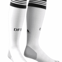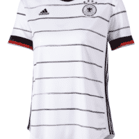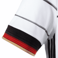 Die aktuellen DFB Trikots von adidas haben einen völlig neuen Look erhalten: Wie immer ist das Heimtrikot weiß mit schwarzen Akzenten. Dieses Mal sind es weiße dünne Streifen, die auf der Vorderseite und dem oberen Teil der Rückseite angebracht wurden. Dabei ist jeder Streifen anders als der nächste, denn diese Streifen wurden mit einem Pinsel kreiert und sollen den künstlerischen Anspruch darstellen. Ein schwarzer Rundkragen ist ebenfalls Blickfänger wie die vier Sterne der Weltmeisterschaften im Nacken und überhalb des DFB-Logos. Das adidas-Logo wurde auf der rechten Seite eingenäht.