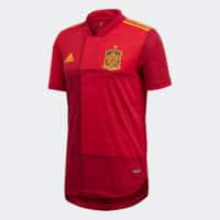 Die Trikots der spanischen Nationalmannschaft gehören Jahr für Jahr zu den Bestsellern beim Trikotverkauf. Auch bei der EM 2020 wird das spanische Trikot wieder tausende Male über die Ladentheke gehen. Momentan spielt die spanische Nationalmannschaft noch in ihren alten Trikots. Zur EM 2020 wird es allerdings ein neues Jersey von dem deutschen Ausrüster Adidas geben. Voraussichtlich werden die spanischen Stars die letzten Spiele der EM-Qualifikation bereits im neuen Jersey spielen. Das Heimtrikot ist traditionell rot. Lediglich eine Seite des Trikots ist in mit Rauten in den Farben des spanischen Wappens verziert. Zudem thronen auf der Brust das spanische Verbandslogo und das Adidas-Emblem. Weitere farbliche Akzente gibt es nicht. Das Auswärtstrikot ist momentan weiß.